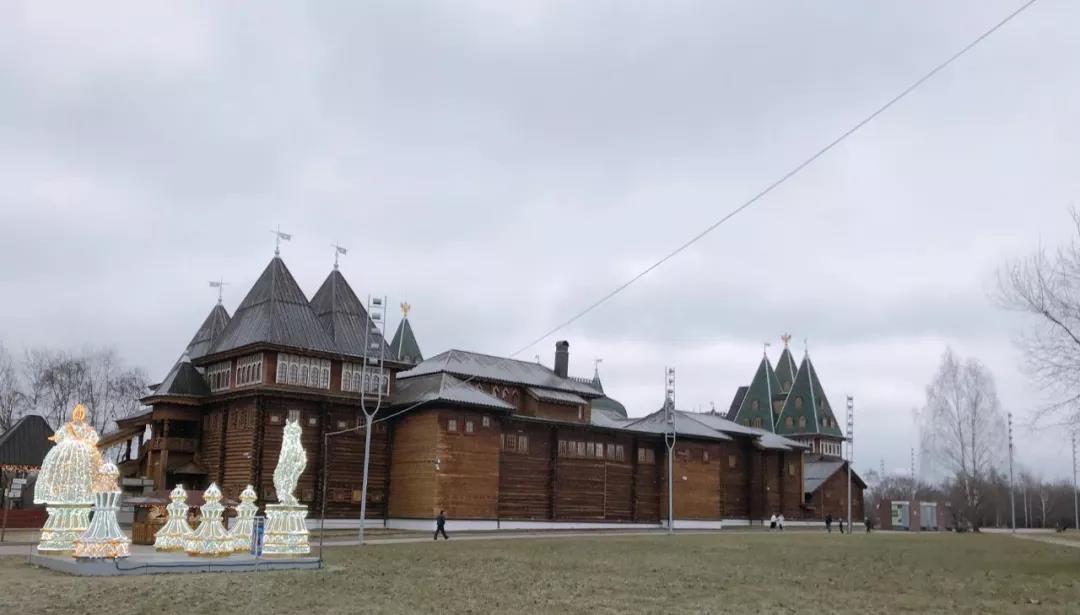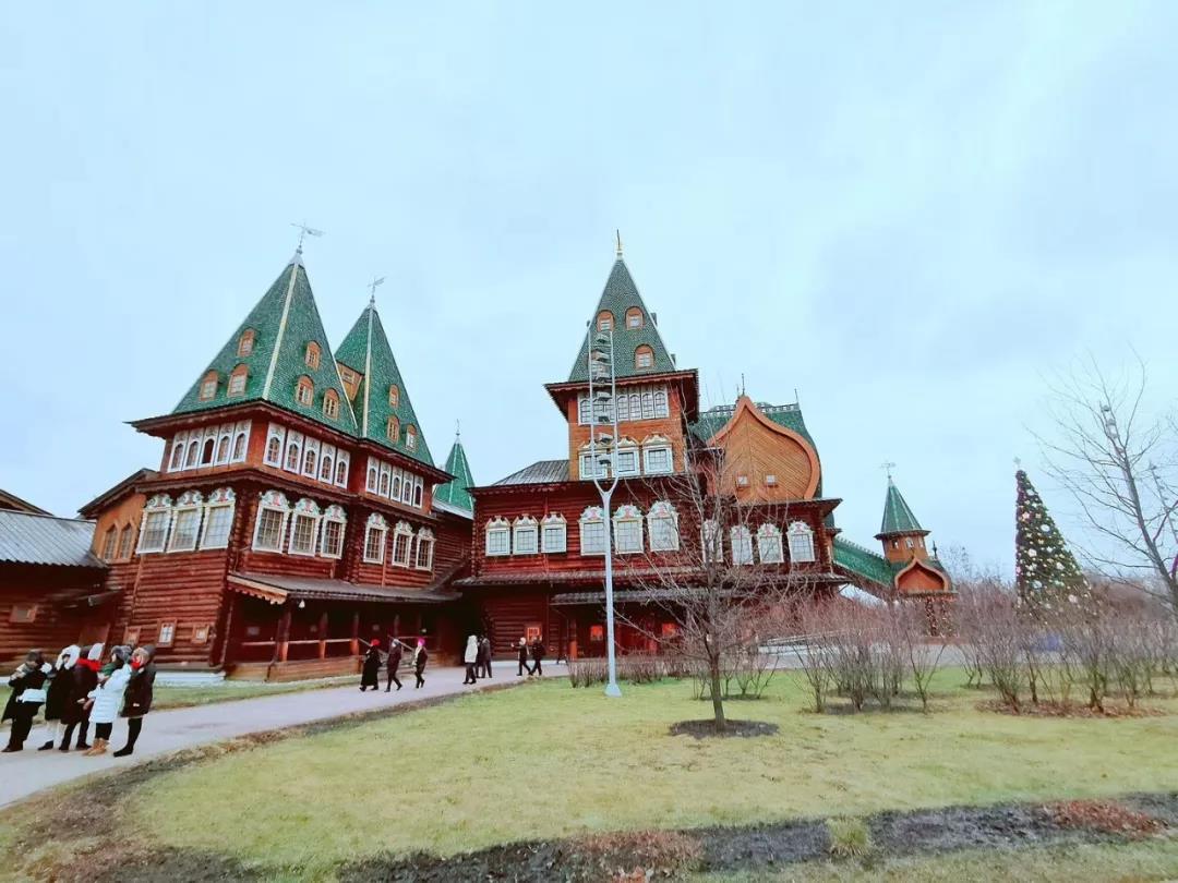 下一站是卡洛明斯克莊園,它擁有“世界第八大奇跡”的美譽(yù),主宮殿由全木質(zhì)結(jié)構(gòu)并采用榫卯原理建成,共有270個(gè)房間和3000扇窗戶,絕對是工藝的極高造詣。這時(shí)天上零星下起了小雪,為行程帶來了幾分美意。