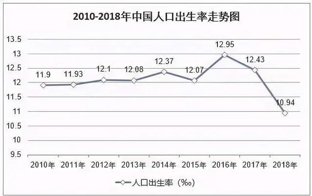 畢竟在2000年的時候,我國出生的人口尚有1771萬,而到了2018年卻降到了1523萬,這數(shù)據(jù)還是在2016年二孩政策刺激下的回升后的相對高峰,如果沒有二孩政策的短時激勵,相信數(shù)字要比1523萬更低得多,而且人口出生率降低的趨勢卻一直沒有改變,一直在持續(xù)走低。