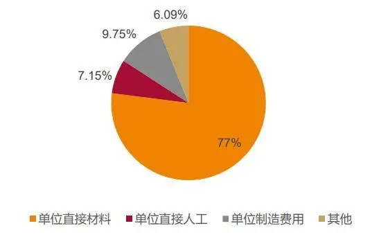 原材料成本占到單位營(yíng)業(yè)成本的 77%