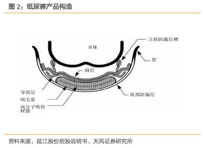 這些面層材料中,非常重要的除了導(dǎo)流層的打孔無紡布,還有更柔軟、親膚性好、在亞太地區(qū)占有較高市場份額的熱風(fēng)無紡布。目前中國主要的熱風(fēng)無紡布生產(chǎn)商有延江股份、北京大源、睿智三家公司,其中睿智為日本JNC在華獨家企業(yè),延江股份為行業(yè)龍頭。