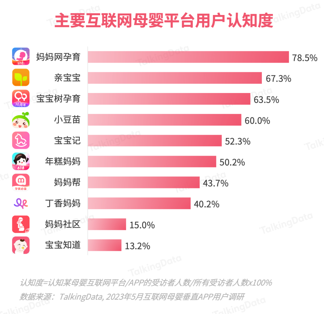 基于TalkingData的母嬰行業(yè)應(yīng)用數(shù)據(jù)及2023 年5月的調(diào)研數(shù)據(jù),報(bào)告對(duì)主要互聯(lián)網(wǎng)母嬰平臺(tái)的月活、認(rèn)知、使用等數(shù)據(jù)進(jìn)行了統(tǒng)計(jì)分析。
