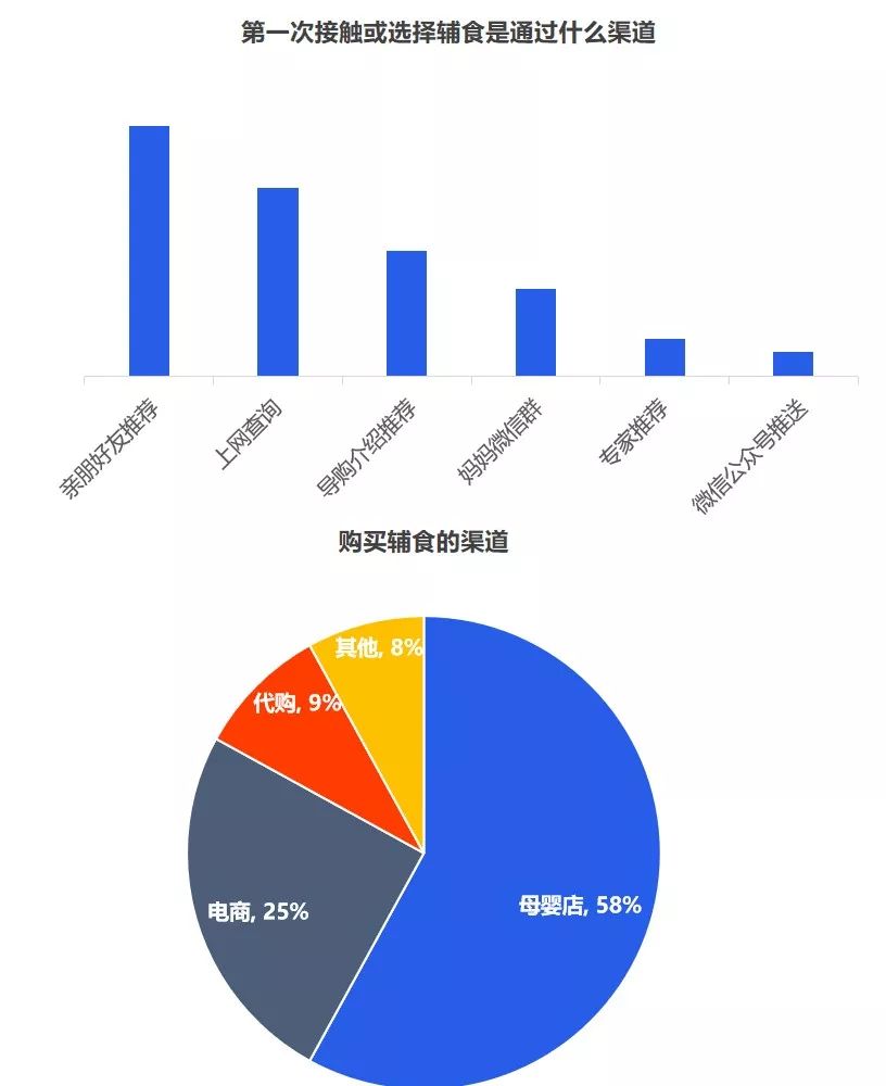 但是對(duì)于品牌而言,最重要的是洞察需求,一個(gè)好的洞察,一定是清晰揭示消費(fèi)者的傾向,暗示了一個(gè)市場(chǎng)機(jī)會(huì)。究竟品牌入局輔食的機(jī)會(huì)有多大,媽媽們是如何看待輔食的? 從當(dāng)前的嬰幼兒用品的采購(gòu)情況來(lái)看,媽媽負(fù)責(zé)嬰幼兒用品的采購(gòu),用戶占比超七成。奶爸也會(huì)經(jīng)常協(xié)助寶媽,參與到嬰幼兒用品的采購(gòu)活動(dòng)中,用戶占比為41.7%。 從近一年的百度指數(shù)來(lái)看,目前關(guān)注輔食最突出的地域是廣州、浙江、江蘇、山東、北京等,可見,當(dāng)前一二線城市的消費(fèi)者對(duì)輔食的認(rèn)知教育有所提高,但是低線城市的消費(fèi)者對(duì)寶寶輔食的添加還不重視。 其次,從年齡段來(lái)看,“30-39歲”的消費(fèi)人群對(duì)輔食的關(guān)注度最高,而在這其中,女性對(duì)輔食的關(guān)注度遠(yuǎn)高于男性。 2019年母嬰行業(yè)觀察通過(guò)線上調(diào)研近10000人數(shù)的家長(zhǎng)進(jìn)行了輔食調(diào)查,其中80后占據(jù)24%,85后占據(jù)26%,90后44%,95后4%,對(duì)輔食的態(tài)度如下: 1、幾乎所有的媽媽都認(rèn)為有必要給寶寶添加輔食,并且有一半的媽媽認(rèn)為要在6個(gè)月時(shí)添加,而有32%的媽媽認(rèn)為在6個(gè)月-1歲開始添加,還有16%的人在6個(gè)月以前就添加輔食。 2、大部分寶寶的輔食來(lái)源都是“購(gòu)買與自制”相結(jié)合,而在購(gòu)買輔食時(shí),媽媽們購(gòu)買最多的類型依舊是米粉,其次則是餅干、磨牙棒等小食品、營(yíng)養(yǎng)面等。 3、互聯(lián)網(wǎng)與社交圈對(duì)媽媽的購(gòu)買決策權(quán)的影響力較大,據(jù)調(diào)查顯示,媽媽們第一次接觸或選擇輔食大多都是通過(guò)親朋好友推薦,上網(wǎng)查詢等。當(dāng)然消費(fèi)者在購(gòu)買嬰兒輔食的渠道選擇上,其實(shí)與奶粉并無(wú)不同,為了保證產(chǎn)品的質(zhì)量和安全性,同時(shí)也為了可以得到育嬰專家的指導(dǎo)和幫助,消費(fèi)者更傾向于在專業(yè)的母嬰用品連鎖店或主流電商平臺(tái)購(gòu)買食品。 4、隨著85后、90后新生代父母的崛起,他們與父輩的消費(fèi)觀念并不相同,不再執(zhí)著與于進(jìn)口與價(jià)格等,而是開始關(guān)注是營(yíng)養(yǎng)配方,重要的是寶寶喜歡。 5、對(duì)于寶寶而言,自添加輔食開始,都是與奶粉喂養(yǎng)相結(jié)合,目前超一半的寶寶每天食用輔食的頻率都是一天兩頓。當(dāng)然這在一定程度上也決定了每個(gè)月在寶寶的輔食上的花費(fèi)是多少,從月消費(fèi)來(lái)看,可以明顯看出200以內(nèi)的將近半數(shù),當(dāng)然也可以看出花費(fèi)在300以上的有21%,可見,對(duì)于嬰兒食品這個(gè)特殊的品類,以及嬰幼兒這個(gè)特殊的消費(fèi)人群,消費(fèi)持續(xù)升級(jí)仍然明顯。近兩年來(lái),嬰幼兒輔食高端化、有機(jī)化趨勢(shì)明顯。 近幾年來(lái),越來(lái)越多的媽媽意識(shí)到輔食的重要性,隨著我國(guó)居民可支配的收入不斷提高,消費(fèi)者投入了更多的關(guān)注給自己的孩子,作為寶寶的第二餐,消費(fèi)者愿意投入更多費(fèi)用,使用周期會(huì)不斷變長(zhǎng),且更注重輔食產(chǎn)品的品質(zhì)和質(zhì)量??梢婋S著消費(fèi)水平的提升,年輕父母對(duì)于對(duì)孩子的飲食質(zhì)量、飲食營(yíng)養(yǎng)的投入更加重視,會(huì)更追求高附加值、高品質(zhì)的輔食,中國(guó)輔食市場(chǎng)會(huì)繼續(xù)高速發(fā)展。