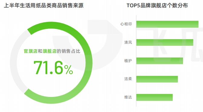 可以看到,2023上半年生活用紙的銷售來(lái)源中,旗艦店與官方旗艦店的銷售占比高達(dá)71.6%;品牌們通常會(huì)圍繞產(chǎn)品線或細(xì)分人群進(jìn)行店鋪矩陣搭建,進(jìn)而開展有針對(duì)性的營(yíng)銷,以增加轉(zhuǎn)化幾率。